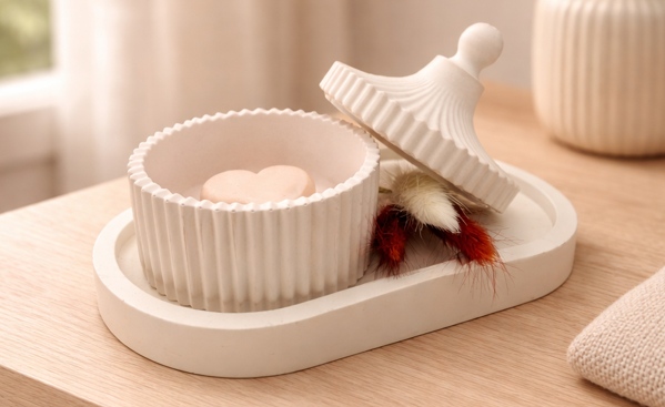 Unsere Deko-Sets bringen Ruhe, Stil und eine stimmige Atmosphäre in dein Zuhause.