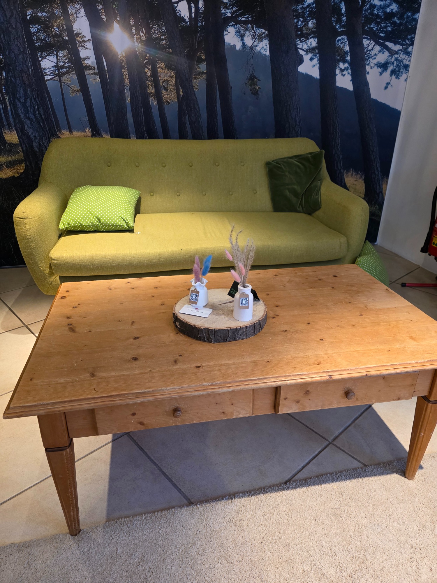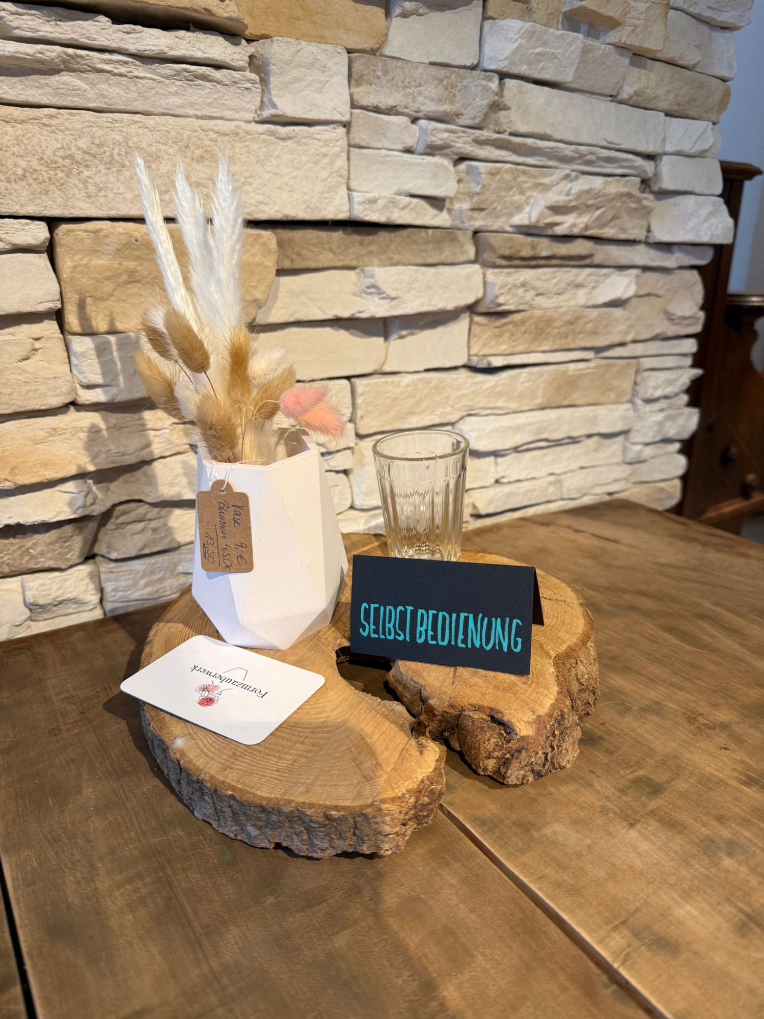 Die Tische wurden liebevoll mit unseren Vasen dekoriert und ein ganzes Regal zeigt eine Auswahl unserer besonderen Herzensstücke.