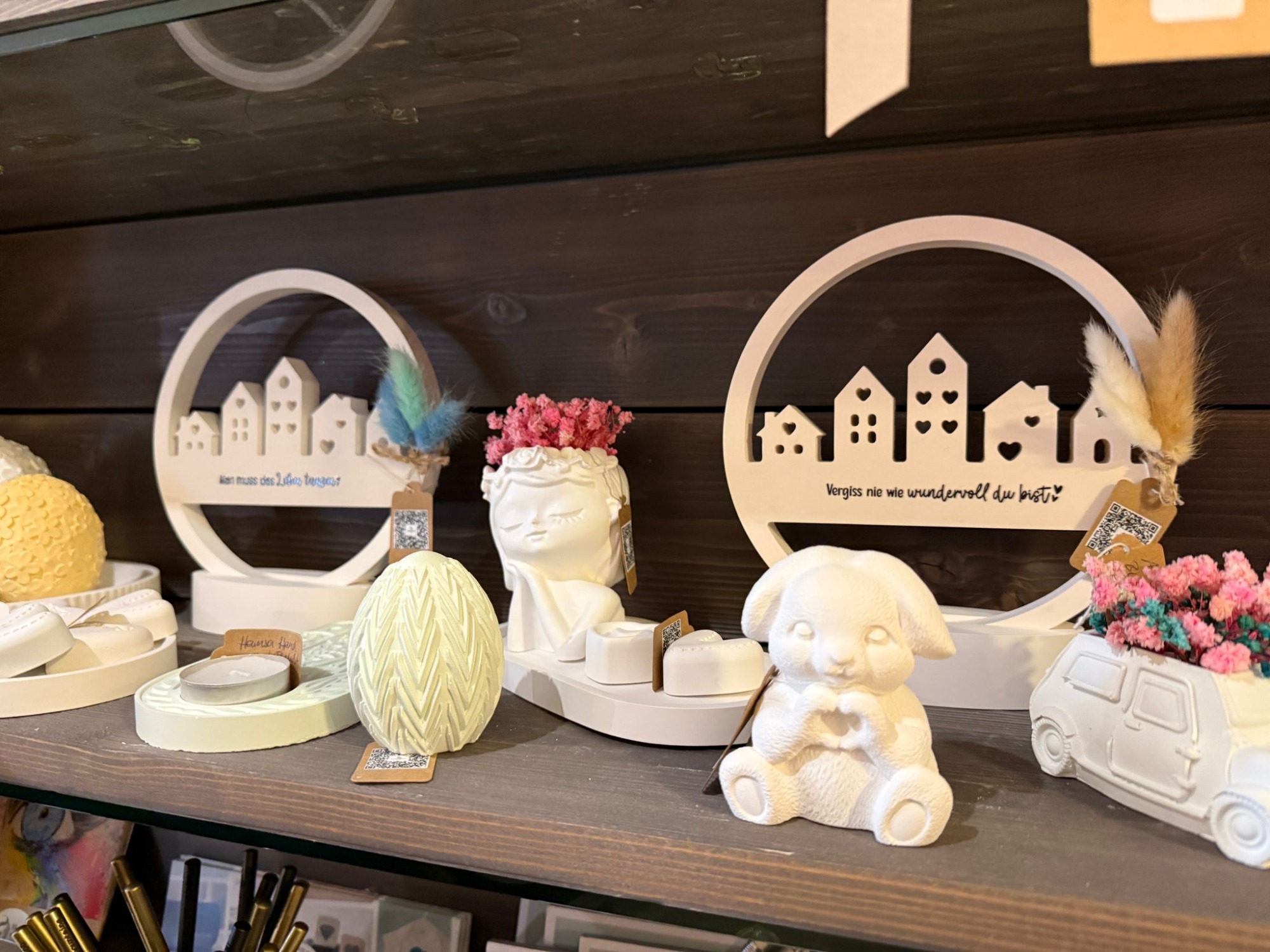 Gips wurde dabei unser Material der Wahl. Still, wandelbar und voller Möglichkeiten. Jedes Stück erzählte plötzlich eine eigene kleine Geschichte – und wir merkten, wie viel Freude es uns machte, diese Formen entstehen zu sehen.